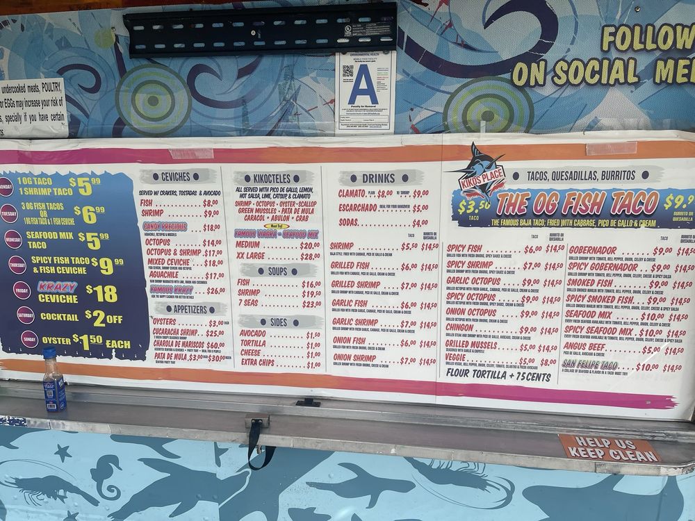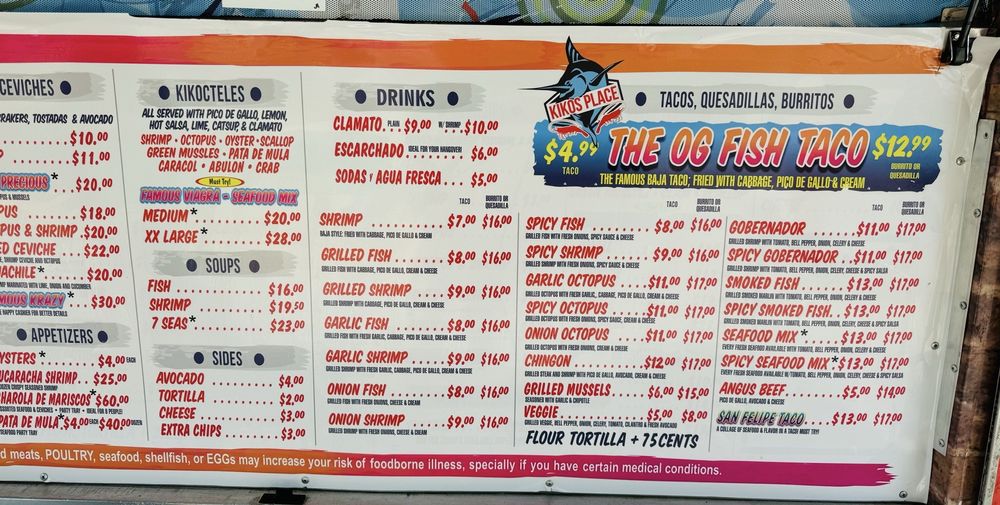 Introducing Kiko's Place Seafood, a food truck located in San Diego, CA offering a fusion of Mexican and seafood dishes. With a focus on fresh ingredients and bold flavors, Kiko's Place stands out for its delicious seafood options like shrimp tacos, fish burritos, and ceviche. Customers rave about the must-try OG fish tacos and the flavorful broth served while waiting for orders. The laid-back atmosphere and quick service make it a popular spot for lunch or a casual dinner. With happy hour specials, vegetarian options, and Latinx-owned, Kiko's Place Seafood is a must-visit for seafood lovers looking for a unique dining experience in San Diego.